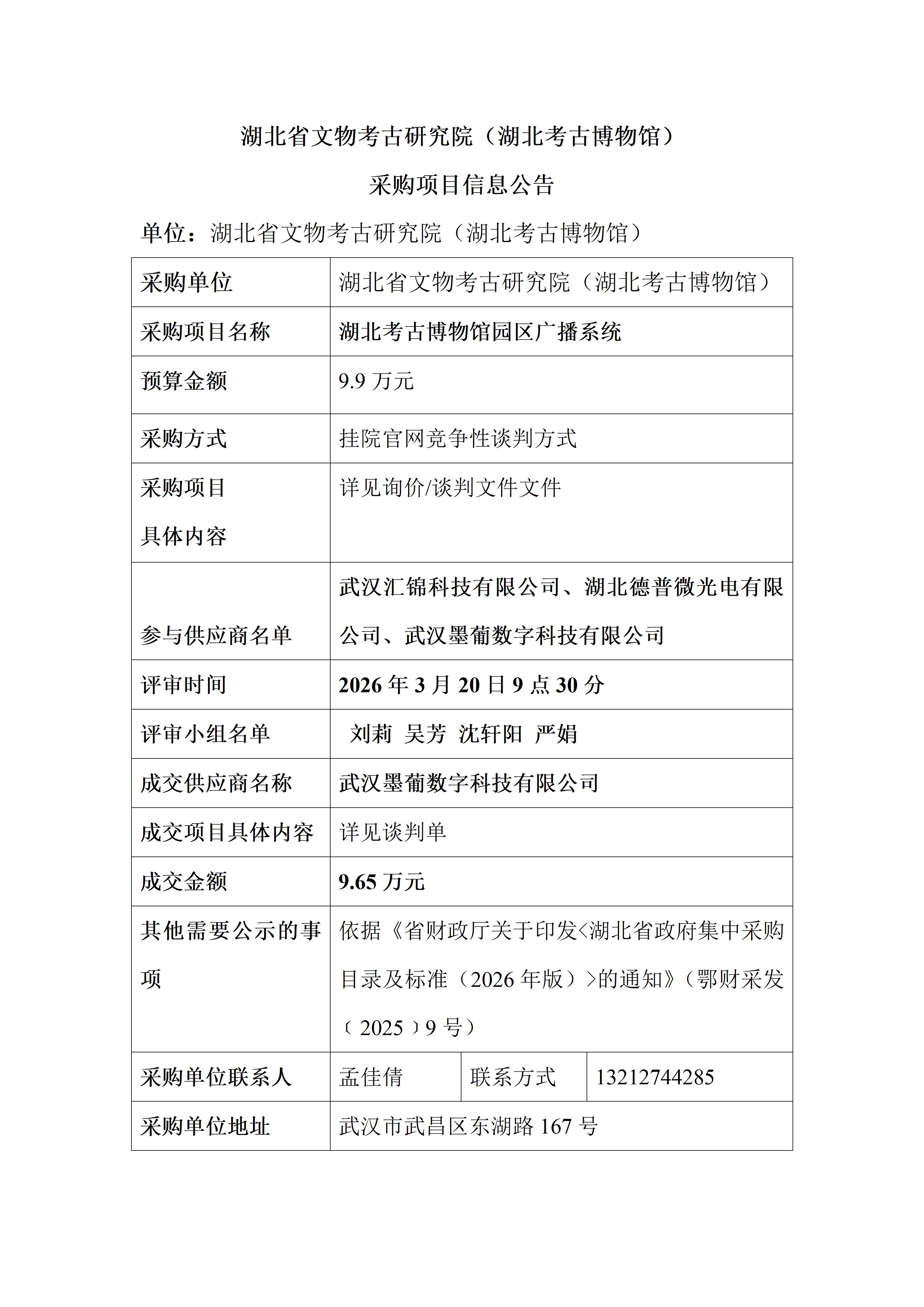 湖北省文物考古研究院(湖北考古博物馆)采购项目信息公告-湖北考古博物馆园区广播系统