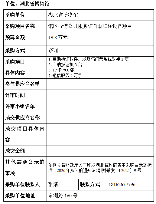 湖北省博物馆采购项目信息公告